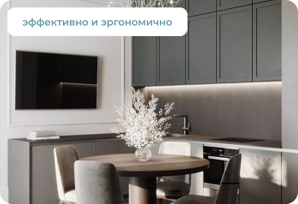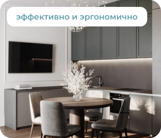 Мы бережем каждый квадратный метр нашего клиента, при необходимости встраиваем мебель и технику. Создаем умный интерьер, чтобы он был комфортен каждому.