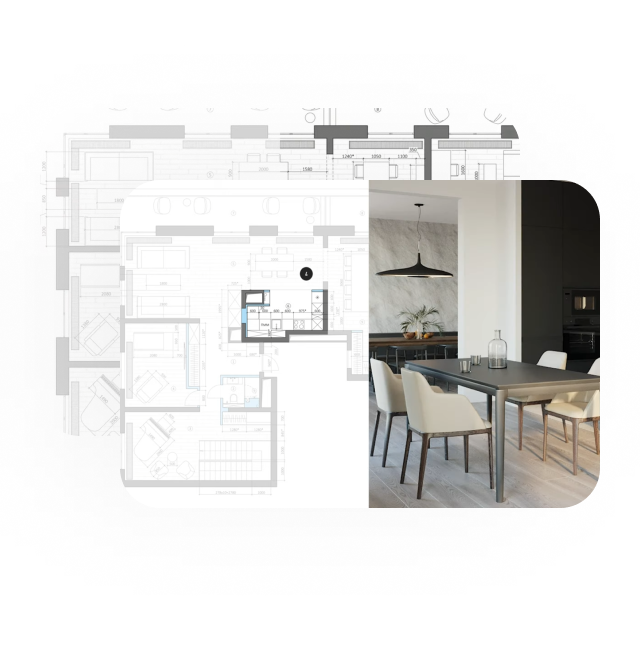 Подключаем руководителей стройки еще на этапе проектирования интерьера, что гарантирует 100% реализацию интерьера в задуманном виде.